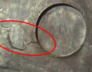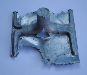 Hot tears are the formation of irreversible failure or a crack in the still semi solid casting. This occurs in the solidification phase of the casting process. In the below image we can see a hot tear defect, the cracks are clearly obvious. Best way to check castings for hot tears is to check them by eye as most of these defects will be visible. However in some cases it may be necessary to respect through magnification or even X-ray. This defect will result in the castings being scrapped as the casting has a weak point and will not have full integrity.