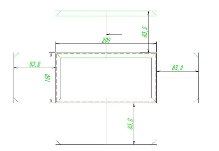 The folded edge is 80-10, and calculated based on the cold-rolled plate thickness of 2.0, the deduction for each blade is 3.4,90-3.4 * 2=83.2. We offset 83.2 from each edge line, as shown in the following figure: