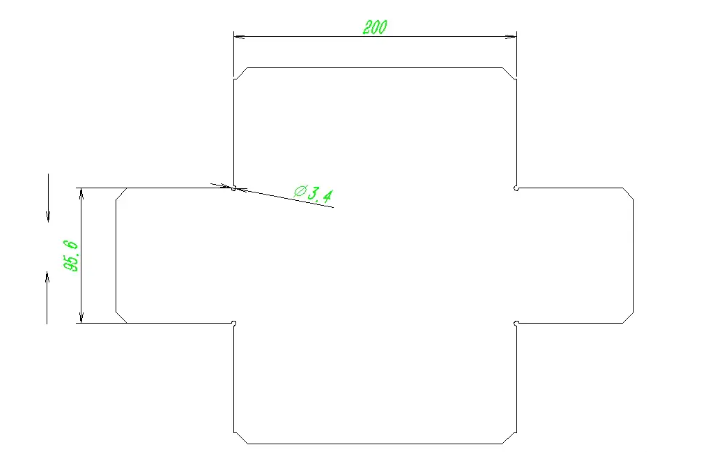 Attention: At this point, the width of the horizontal edge is 96, while the total width of the box formed is 100, so there is no gap. When bending, it is easy to deform due to compression. Therefore, it is necessary to shrink the edge of 96 a bit, and each side should be reduced by 0.2.