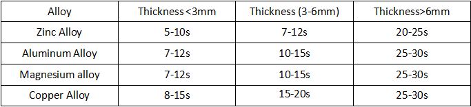The holding time is the time from the end of holding pressure to the time when the casting is ejected. Sufficient mold retention time is to make the casting fully solidified and moderately cooled in the mold, so that it has a certain strength, and the casting will not deform or crack when the mold is opened and ejected. In general, the best time for casting to be deformed and cracked is to leave the shortest time. However, too long die retention time not only reduces the production efficiency, but also brings bad consequences.