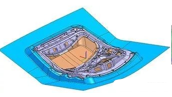 Due to the convex shape of the windshield and the large curvature of the part in the Z and Y directions, in order to avoid wrinkling of the sheet when the press ring is closed and during the drawing process, the press surface is ensured in both the X and Y directions. The included angle is larger than the included angle of the punch surface.
