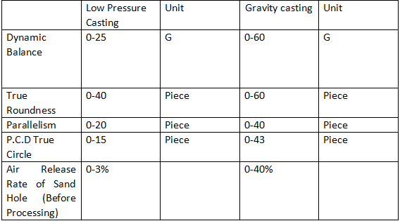 From the above data, it is not difficult to see that the data performance of low-pressure casting is superior to that of traditional gravity casting. All the data that will affect the smooth and comfortable driving are relatively strong, so the low-pressure casting hub with excellent balance is far more than that of traditional gravity casting hub.