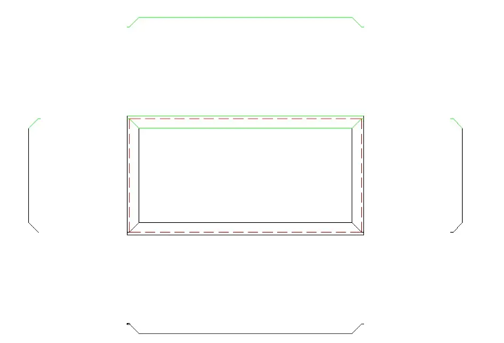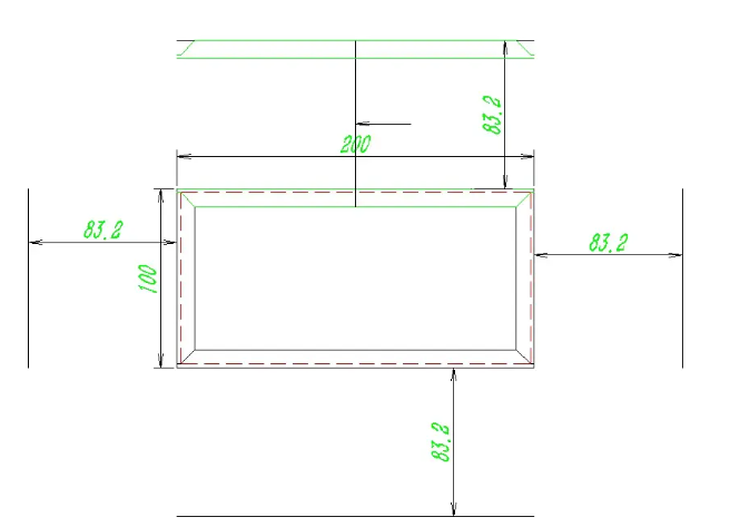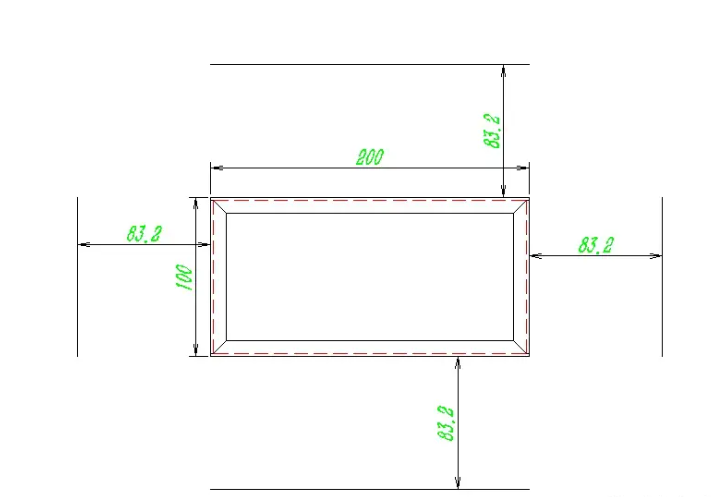 The folded edge is 80-10, and calculated based on the cold-rolled plate thickness of 2.0, the deduction for each blade is 3.4,90-3.4 * 2=83.2. We offset 83.2 from each edge line, as shown in the following figure: